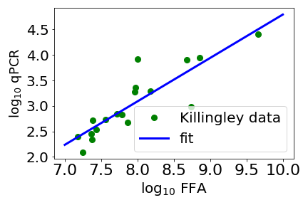 And then did not fit a straight line to this data!** Starting early Feb I am teaching a computational modelling course to physics students, and pretty much the first thing I do when students get some data, is help them fit to it, eg fit a straight line to the data. I find it bizarre that the authors of this work were apparently not interested in quantifying the relation between their measure of how much infectious virus there is, and perhaps the simplest method (qPCR) we have for assessing a viral load.