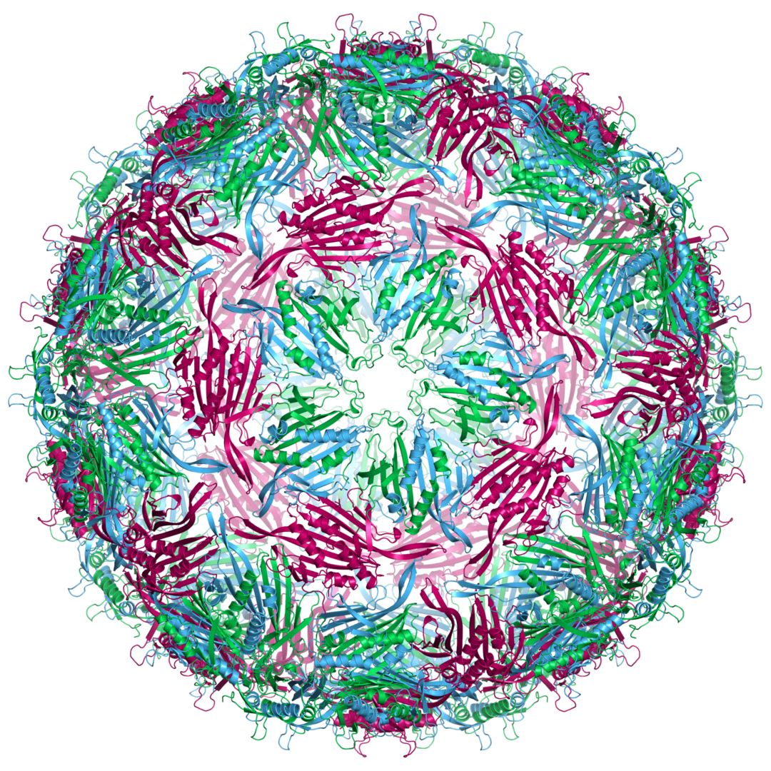Above is avery pretty cartoon/schematic* of a virus MS2 that infects bacteria. I think it is used in proof-of-principle studies with viruses, as it is safer/easier/cheaper to work with than viruses that infect us. The virus can become airborne, which brings us to air conditioning units, which typically have filters as part of them. The filters can filter out viruses such as MS2 from the air.